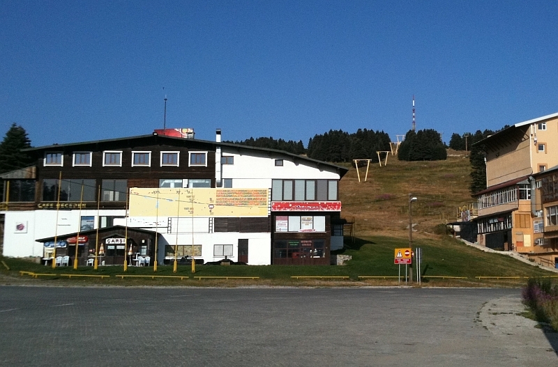 Beceren Cafe’nin arkasından pistlerin görünümü. 32 yıl önce, 4 yaşımda işte bu pistte kayağa başlamıştım. Hep bembeyaz ve kayakçı dolu pist, Ağustos ayında yemyeşil bir çayır görünümünde…