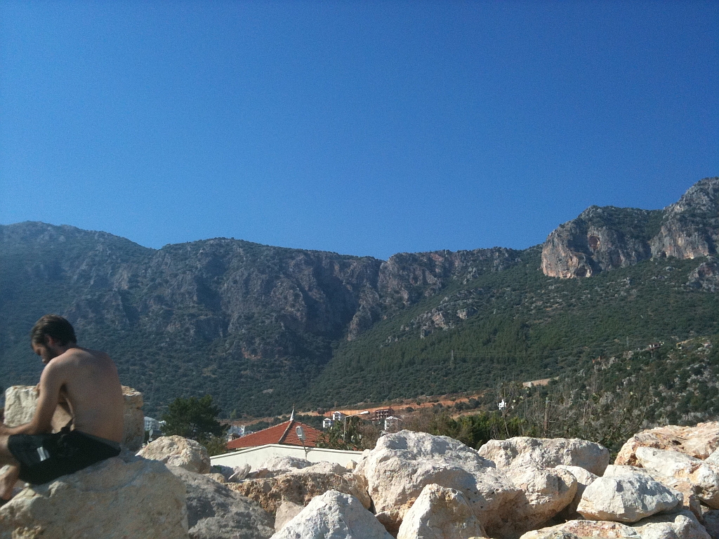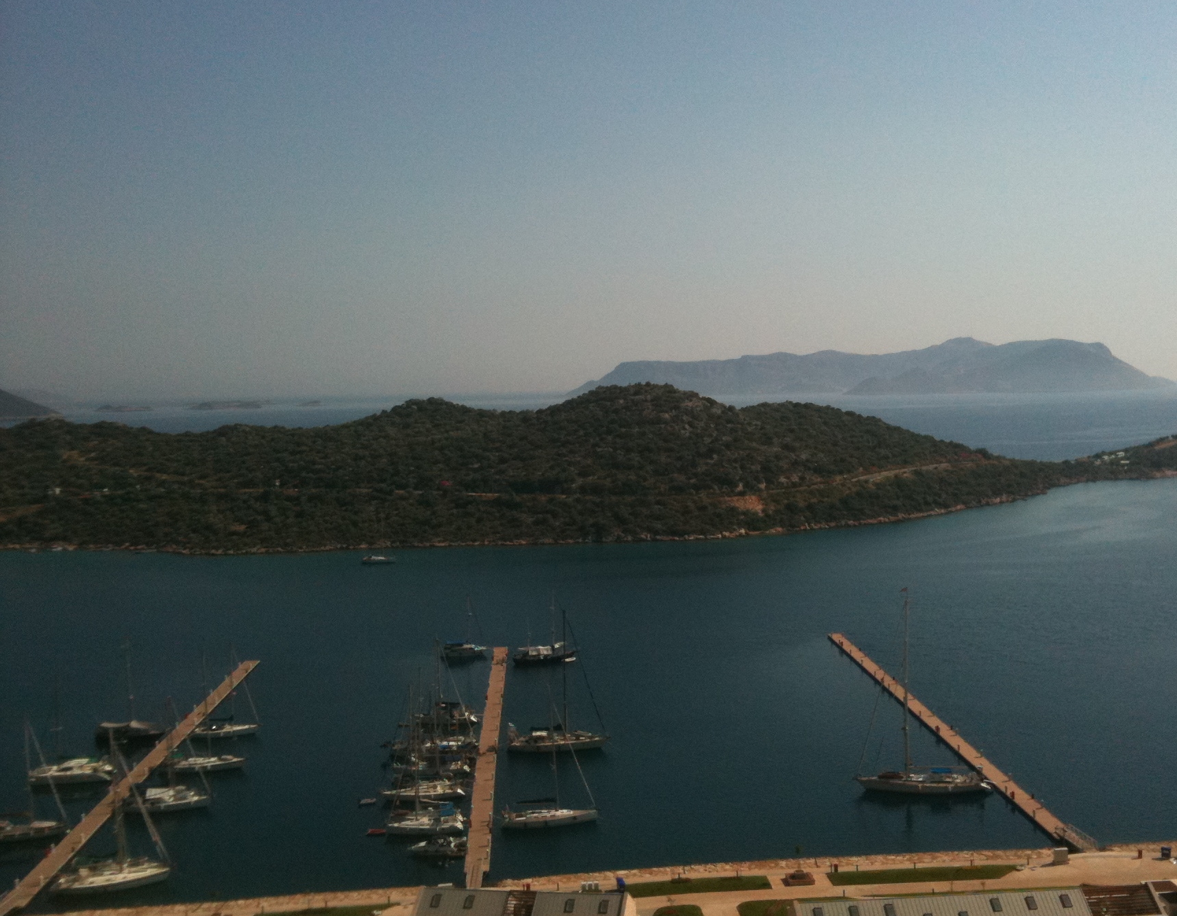 Bitiş noktasından adanın, ayrıca Kaş’ın arkasındaki dağların fotoğraflarını çektim. Tam olarak nerelerden kerteriz alacağımı çalıştım. Akşam 22:00 gibi arkadaşım Mehmetcan gelecekti, hava kararmış olacağından fotoğraflar üzerinden ona kısa bir brifing verecektim.